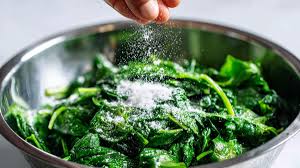 끓는 물에 소금을 넣으면 시금치의 초록색 색소(클로로필)가 더 선명하게 고정됩니다. 또한 약간의 간이 배어들어 무칠 때 양념을 덜 써도 깊은 맛이 납니다. 소금 양은 물 1L 기준 1~2g 정도면 충분합니다.