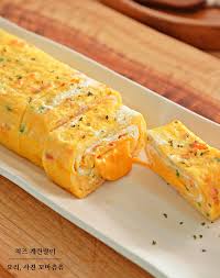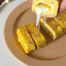 물기가 남아있으면 계란물이 묽어져 잘 말리지 않거든요. 치즈를 넣는 경우에는 두 번째 계란물을 붓고 슬라이스 치즈 한 장을 올린 뒤 말아주면 녹아서 쭉 늘어나는 맛이 일품입니다. 🧀