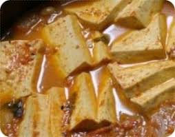볶은 재료에 쌀뜨물 또는 멸치 육수를 붓고 중불에서 끓이기 시작합니다. 이때 다진 마늘도 함께 넣어주세요. 국물이 끓어오르기 시작하면 두부를 넣어 줍니다. 두부는 너무 일찍 넣으면 부서질 수 있으니 국물이 어느 정도 끓어오른 다음에 넣는 것이 좋아요.
