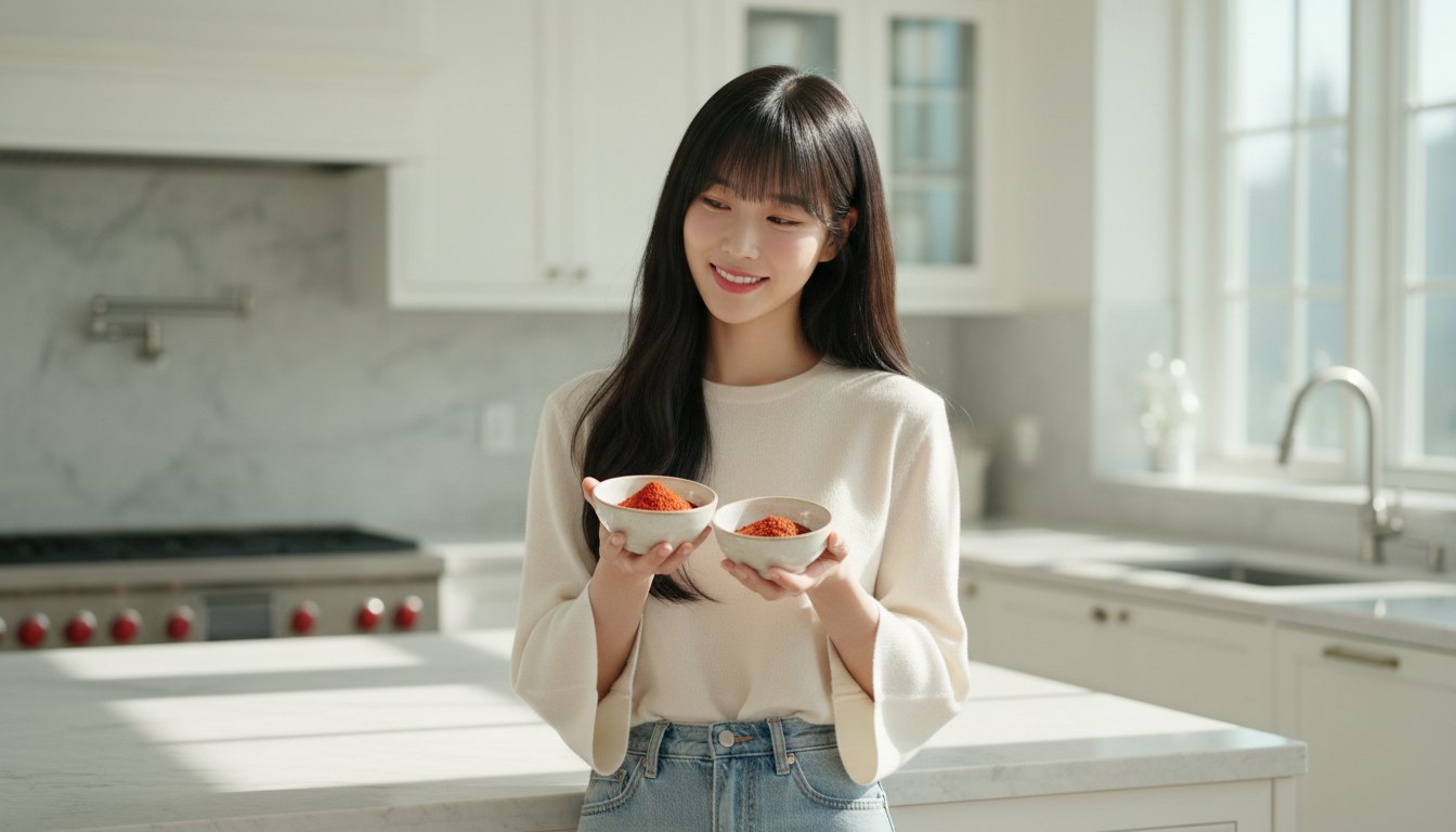 또 하나 중요한 것은 고춧가루의 선택입니다. 오이소박이에는 입자가 고운 고춧가루를 쓰는 것이 좋습니다. 굵은 고춧가루를 쓰면 소의 색이 예쁘게 나오지 않고 텁텁한 느낌이 남습니다. 고운 고춧가루와 중간 입자의 고춧가루를 반반 섞으면 색감과 식감 모두 잡을 수 있습니다.