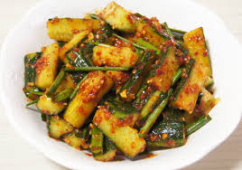 좋은 채소를 고를 때는 표면의 연초록색이 선명하고, 손으로 쥐었을 때 무르지 않고 단단한 것을 선택해야 합니다. 또한, 머리부터 끝부분까지 굵기가 일정한 것이 속에 씨가 적어 나중에 무쳤을 때 물이 덜 생깁니다.
